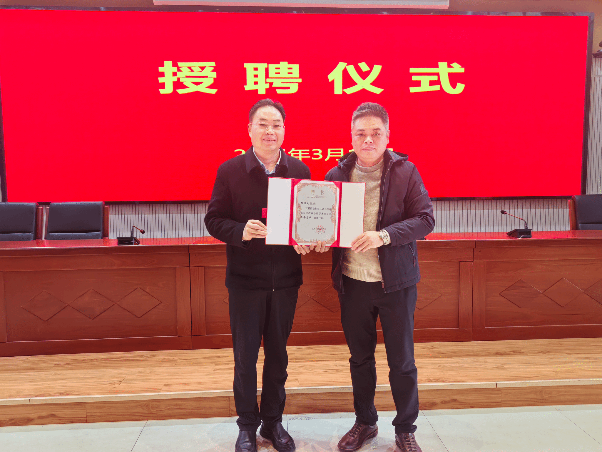 讲座前的授聘仪式上,袁雄为徐国庆教授颁发了william威廉中文学术委员会名誉主任聘书。