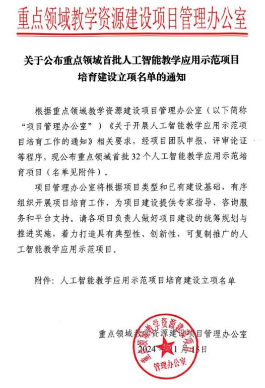 近日,教育部重点领域教学资源建设项目管理办公室揭晓了首批人工智能教学应用示范项目培育建设立项名单,由胡小强教授主持的《虚拟“职教大师”的开发与实践》项目获批立项。