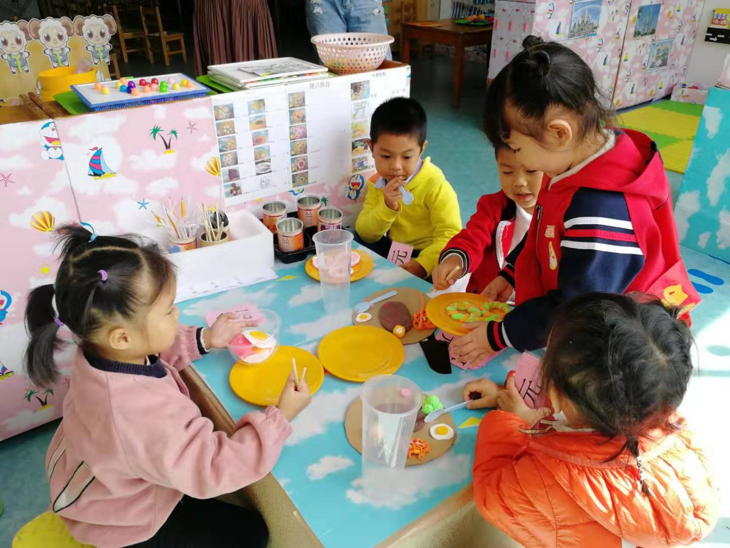 多投放低结构材料,提高幼儿以物代物的能力。当游戏材料过于逼真、单一时,幼儿会比较单调的游戏,在游戏当中,我们提供的大多数是成品,如套餐牛排、粘土做好的荷包蛋、各类蔬菜等,所以大部分情况下厨师的工作是运用微波炉加热好食物然后端给服务员,整个过程中,忽视了幼儿的创造能力,如刘奕佳最后自己想到的用橡皮泥做饺子。我们应该多在区角投放低结构材料、原材料,提供一些范例,引导幼儿自己进行创作。鼓励幼儿寻找餐厅所需要的食材,支持幼儿在游戏中以物代物的假想行为。
