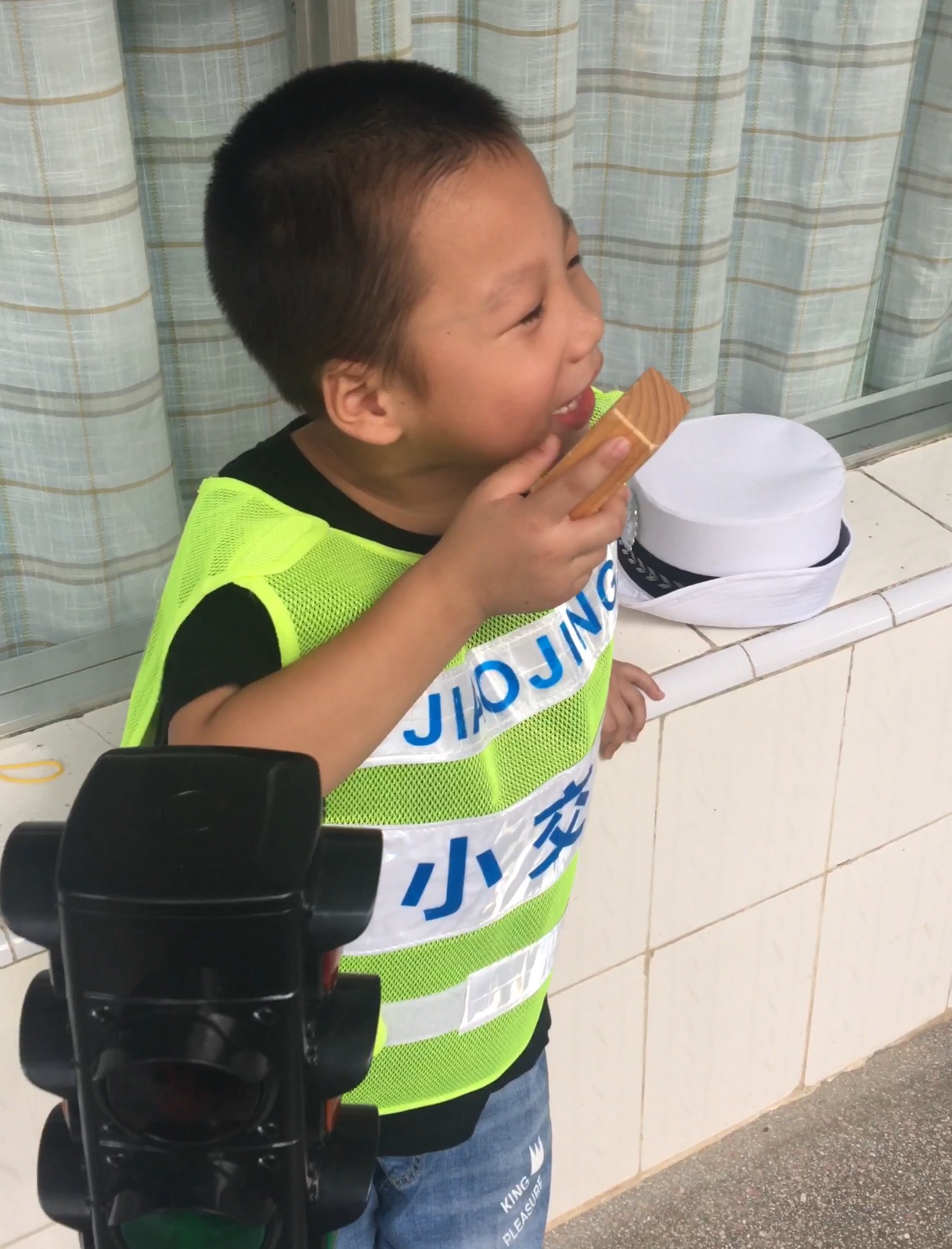 郑天亿说:“老师,我想要一个口哨,我看见马路上的警察叔叔指挥交通的时候都会吹口哨。”