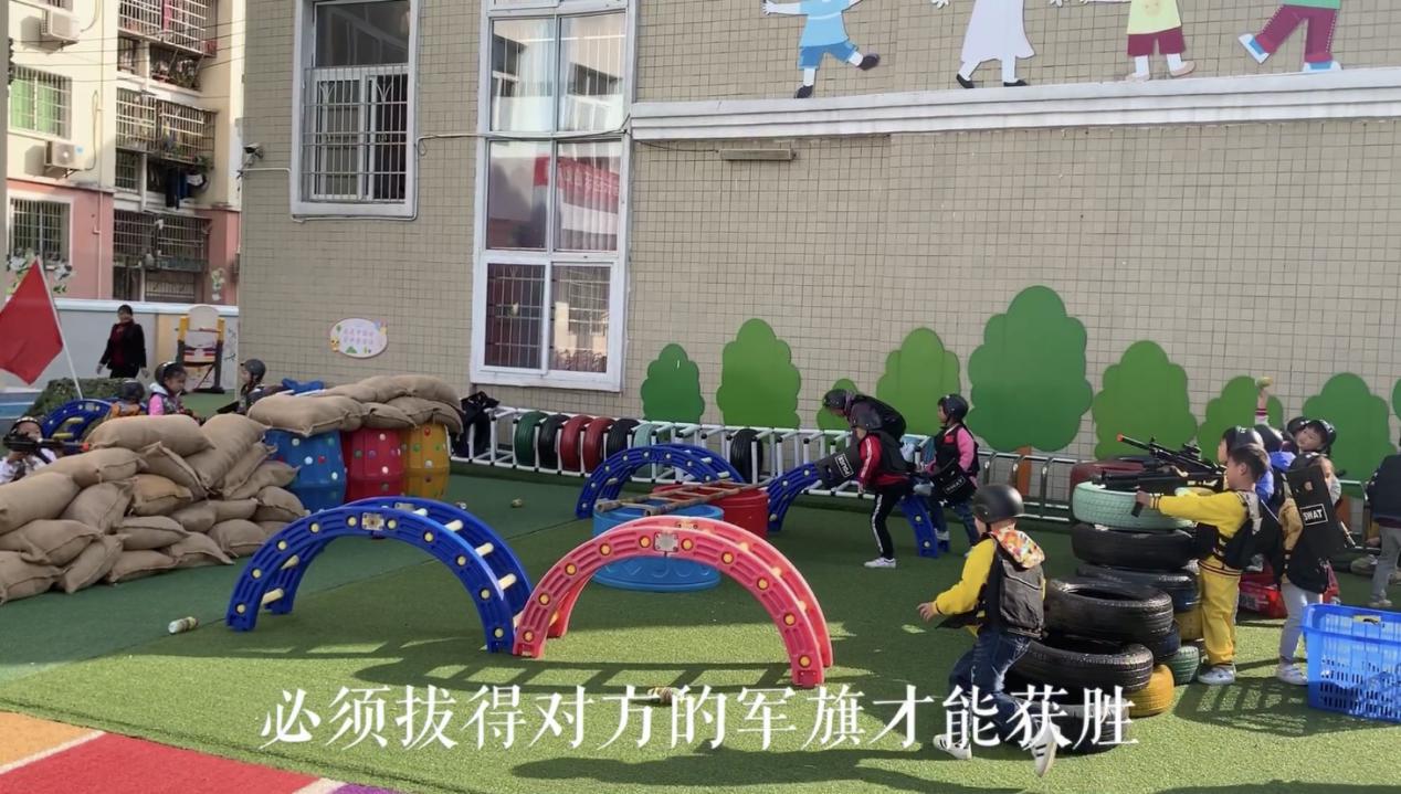 整个对战活动,幼儿能够明确自己的角色任务,在躲避偷袭、营救受伤战友等环节都能有较好的呈现。