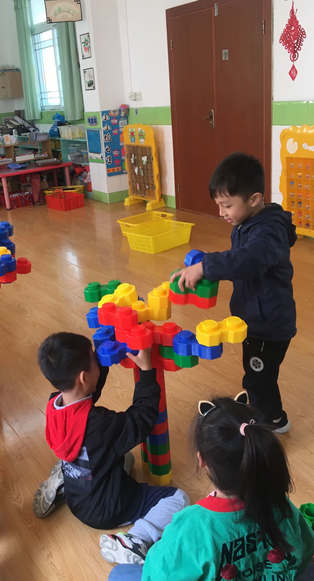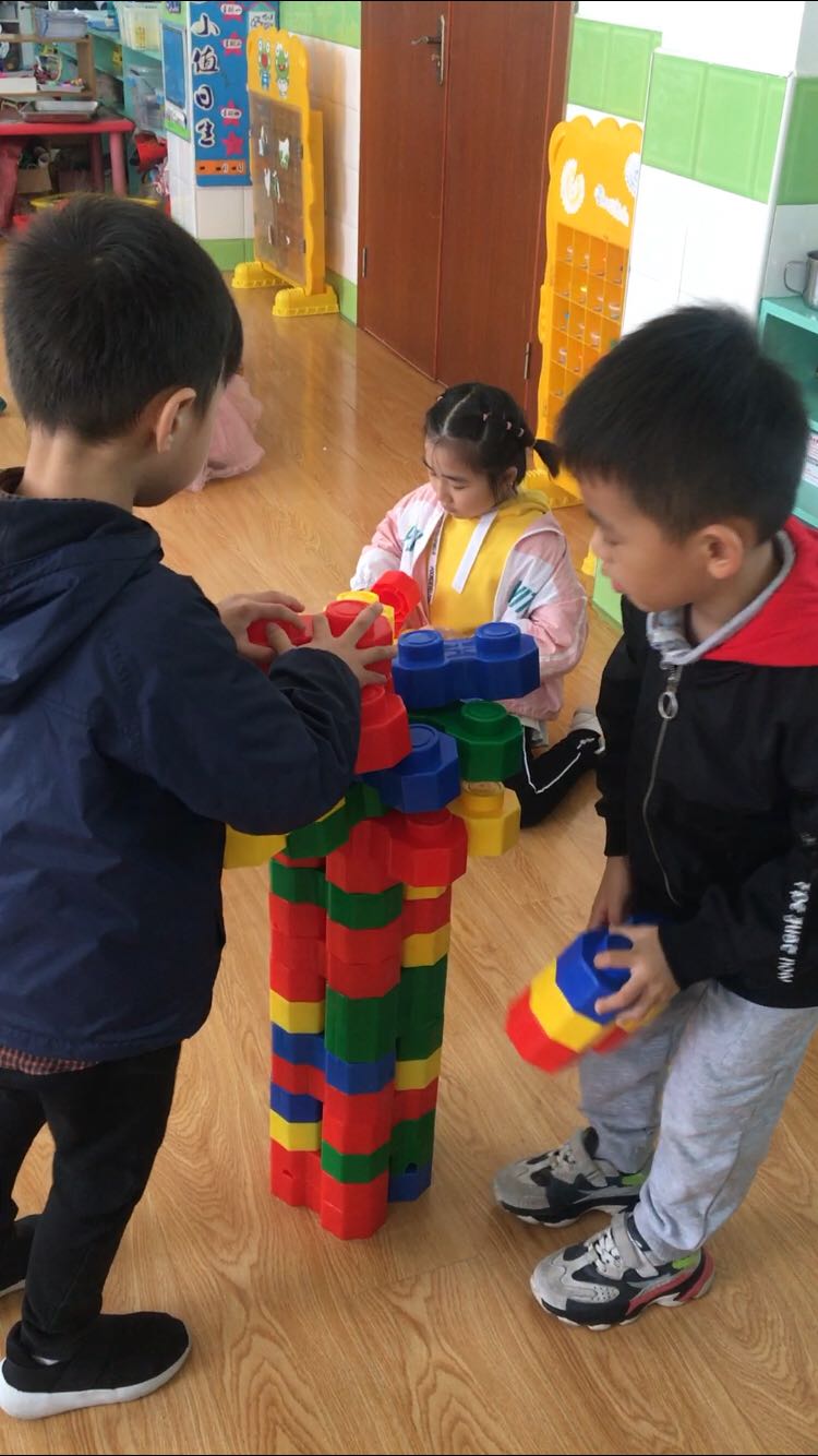 更重要的是,在游戏过程中,孩子们不断变化的搭建群体,从两三个人为一组,到六七个甚至七八个人一起搭建,在这个过程中,孩子们有分工、有合作、有质疑、有协商、有提议,参与其中的每个人都在运用着不同的合作和交往策略。教师全程观察做到了“支持而不打扰,建议而不主宰”,保证了幼儿自主游戏的有效开展。