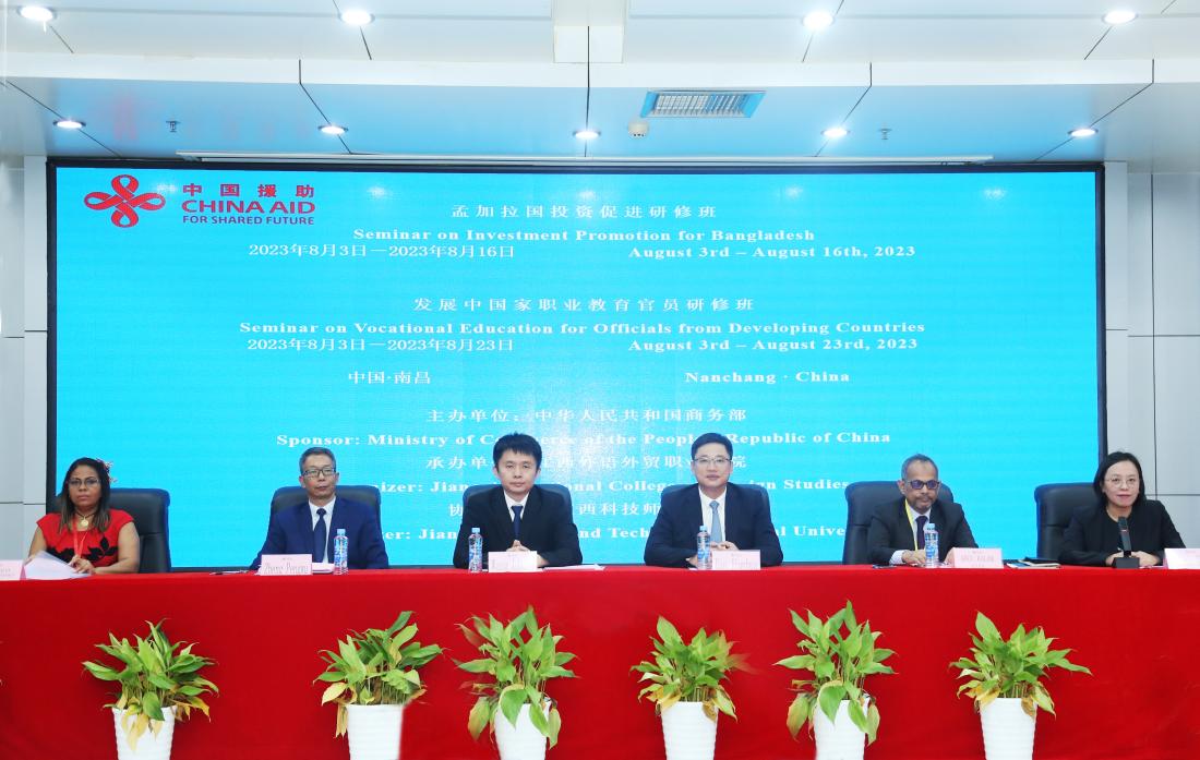 由商务部主办、江西省商务厅承办、江西外语外贸职业学院和WilliamHill威廉希尔中文联办的“发展中国家职业教育官员研修班”于8月3日下午在江西外语外贸职业学院举行开班仪式。学校副校长郑鹏武、国际交流处处长陈敏、william威廉中文主任欧阳忠明参加开班仪式。