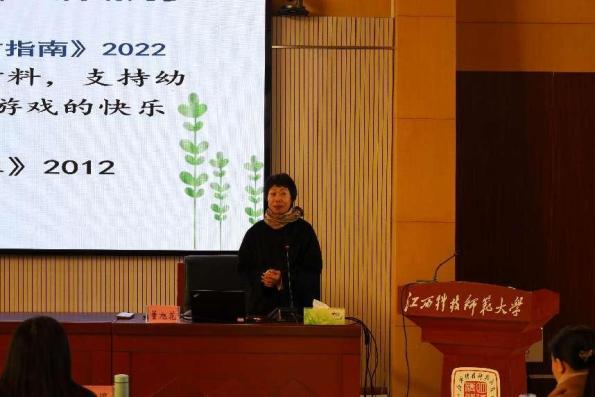 董旭花教授作题为“对幼儿园自主游戏的辩证思考”的报告。她围绕自主游戏的内涵、特点以及实践中遇到的问题进行了深入剖析,并强调教师应辩证理解自由与自主、游戏与自主游戏的关系,为幼儿提供更多自主选择、自主活动的机会,培养幼儿的自主性和创造力。
