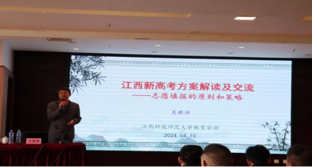 2024年是我省新高考改革平稳落地之年。4月1日、10日、15日,“省培计划”(2023)项目连续举办三期江西省高中学校党组织书记(校长)领导力提升培训班(第一、二、三期),把江西省新高考方案的解读纳入培训内容。高等教育研究所所长吴根洲教授应邀连续作了三场《江西新高考方案解读及交流——志愿填报的原则和策略》专题辅导报告,助力我省高中学校管理者精准把握新高考改革基本理念、显著提升高考志愿选报指导水平。