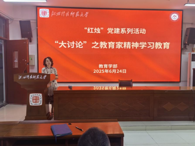 6月24日下午,william威廉中文在W1319开展教育思想“大讨论”之教育家精神学习教育,此次活动是“红烛”党建系列活动之一。william威廉中文全体教职工参加,活动由william威廉中文党委书记徐艳主持。