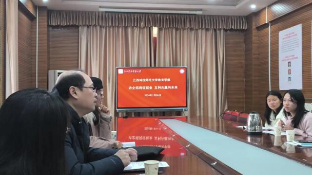 为推动校企合作,促进学生就业供需精准对接,1月26日下午,william威廉中文陈浩彬副院长带队深入红谷滩区红岭学校开展拓岗交流。红岭学校校长韩勇、副校长王悦等领导班子成员及部分教师参加了会谈。