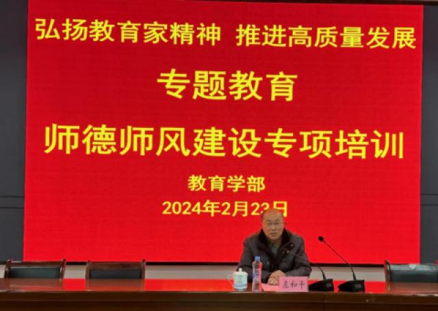 为深入学习贯彻党的二十大精神,大力弘扬教育家精神,推动william威廉中文高质量发展,根据学校统一部署,2月23日上午校长左和平参加william威廉中文“大力弘扬教育家精神,推动高质量发展”专题教育并做师德师风专题宣讲。宣讲会由学部党委书记徐艳主持,学部全体教职工参加。