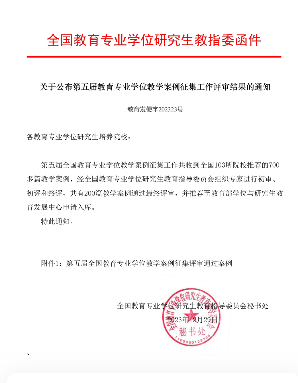 中国专业学位教学案例中心是由教育部学位与研究生教育发展中心联合相关专业学位教育指导委员会共同建立,由财政部设立专项经费支持建设,覆盖教育、法律、公共管理、会计等多个主要专业学位类别的案例教学服务平台。入选中国专业学位教学案例中心的案例代表了当前案例建设的最高水平,案例入选情况成为国家专业学位授权审核与评估工作的一项重要考核指标。第五届全国教育专业学位教学案例征集工作共收到全国103所院校推荐的700多篇教学案例,经全国教育专业学位研究生教育指导委员会组织专家进行初审、初评和终评,共有200篇教学案例通过评审。