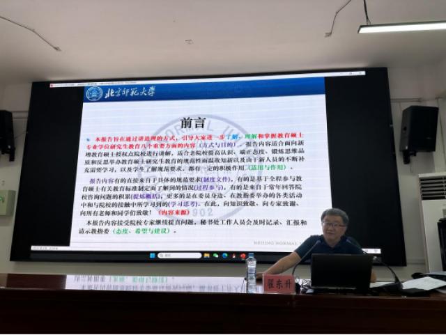 翟东升指出,教育硕士的培养工作需遵循“八要”,即培养目标要清晰、领域拓展要谨慎、前置专业要把关、培养方案要规范、实践教学要重视、案例教学要探索、论文标准要理解、队伍建设要永远在路上。在讲解过程中,翟教授结合具体的学校案例和详细的政策指导文件,解读了教育硕士培养过程中的办学要求、培养方向、实习安排、课程设置等方面问题及相关操作的具体建议和改进措施,并展示了教育领域专家们对实践教学相关问题的讨论,引发了在场教师对教育硕士培养的思考。最后,翟教授为在场师生展示了全国教育硕士论文抽检的部分论文选题,并强调了选题要明确研究范围的要求,为在场教育硕士专业学位研究生们即将展开的毕业论文工作指明了方向。