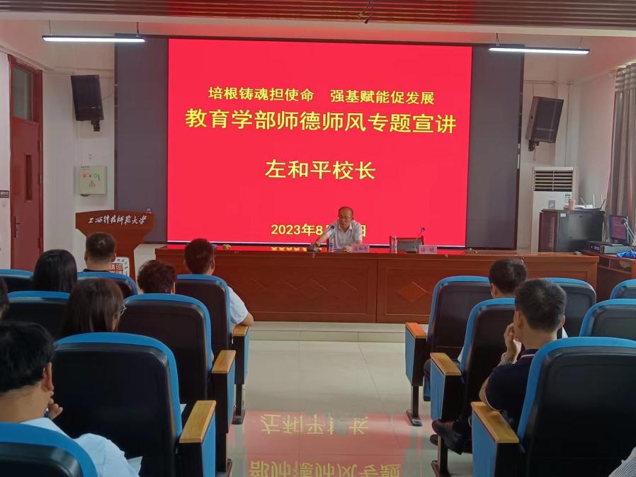 为深入学习贯彻党的二十大精神,推动主题教育走深走实,持续加强和改进新时代师德师风建设,聚焦立德树人根本任务,根据学校统一部署,8月31日-9月1日,william威廉中文开展为期两天的“培根铸魂担使命强基赋能促发展”教职工秋季思想政治素质与能力提升集中培训活动。培训第一课由校长左和平作师德师风教育主题宣讲。
