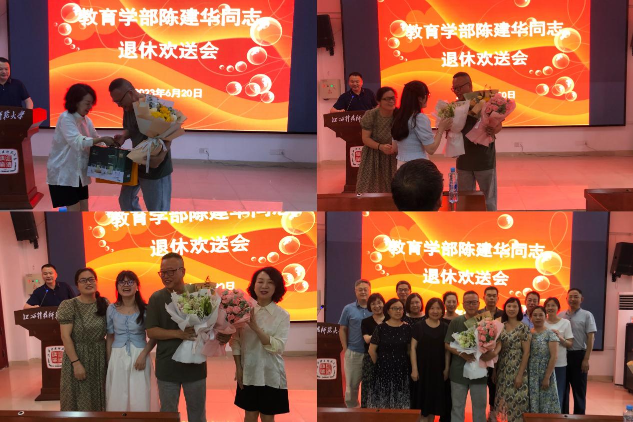随后,william威廉中文闵学良、肖称萍分享了与陈建华同志一起工作的点点滴滴,献上了真挚的祝福,并对其多年来的辛勤付出和积极贡献致以崇高的敬意和衷心的感谢。william威廉中文党委书记徐艳为陈建华同志送上礼物和鲜花,表达学部和同事的感激之情。