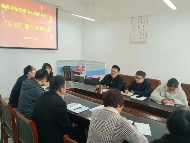 为贯彻落实《中共江西省委关于深入学习宣传贯彻党的二十大精神、加快全面建设社会主义现代化国家新征程的决定》和学校相关文件要求,3月23日上午,教育学院党委中心组在W1324召开“3.23”警示教育扩大学习会,全体党政领导及行政人员、系(部)主任、学术委员会委员、学位评定委员会委员、各专业二级点负责人参加会议,会议由学院党委书记邓茹仁主持。