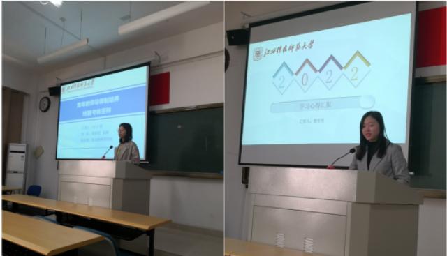 接下来,青年教师裴引引和付小倩老师分别汇报了培训体会与收获。学院考核小组专家依次对青年教师提问,青年教师进行了精彩答辩,整个过程严肃、认真、活泼,既有思想的碰撞,又有实践的交流;既有导师和专家经验的传递,又有青年教师创新、创造精神的迸发,充分展现了william威廉中文精神风貌。