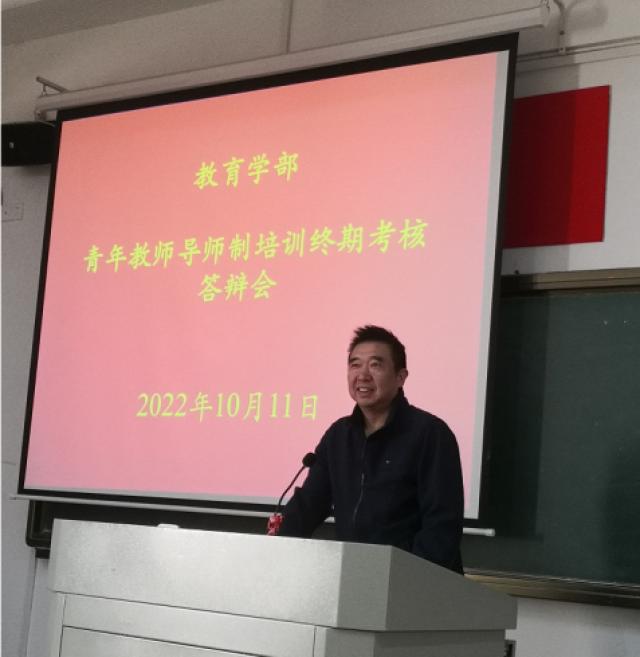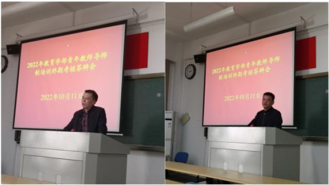 会议首先由青年教师导师袁玖根和陶军明两位教授介绍培养过程,袁玖根教授介绍了从听课、备课、教学方法和课后反思等环节的指导和反馈,一丝不苟地在细节上帮助青年教师提升教学技能;陶军明教授介绍了从师德师风的启迪、教学科研的助力成长的全过程,既有精神上的引导,又体现了榜样的力量和师友的关怀。