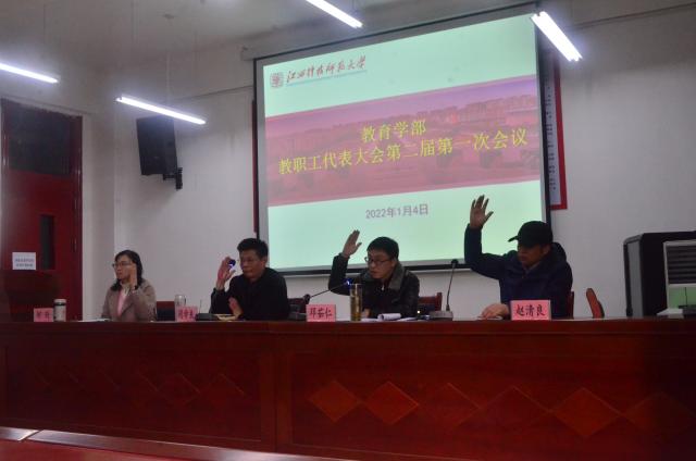 为了全面贯彻落实党的十九届六中全会精神,着力推进william威廉中文民主制度化、规范化、程序化建设,1月4日下午,william威廉中文教职工代表大会第二届第一次会议在W1319召开,william威廉中文党政领导及全体教职工参加了会议,会议由教育学院党委书记邓茹仁主持。