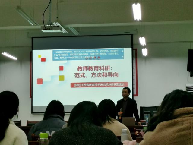 12月8日下午,江西省教育威廉希尔所教科规划办常务副主任张俊博士应邀在william威廉中文W1319会议室做了《教师教育科研:范式、方法和导向》学术讲座。william威廉中文青年教师教师与研究生80余人到场聆听,讲座由william威廉中文常务副主任兼教育学院院长闵学良主持。