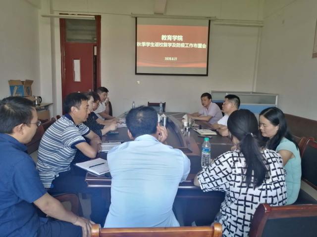 8月27日上午,教育学院在三楼会议室召开了2020年秋季返校复学准备及防疫工作布置会。院长闵学良、党委副书记赵清良、学工办主任曹瑜、教学办主任何玉霞及全体班主任参加了会议。