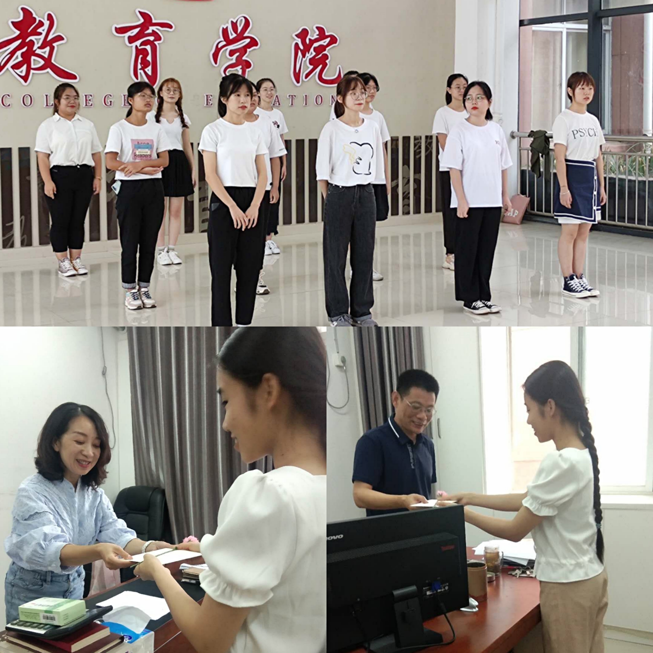 在这个崇高的节日里,为了体现同学们对老师诚挚的祝福感激之情,加深师生之间的情感,学院学生代表在今年的教师节以特别的礼物向各位老师献上真诚的祝福。在教育学院教学楼,学生代表向各位老师表演精心准备的手势舞,在表演结束后为各位老师送去同学们由衷写下的祝福贺卡以及手工制作的康乃馨,并在本次活动中向老师表达敬意,感谢老师的辛勤工作。