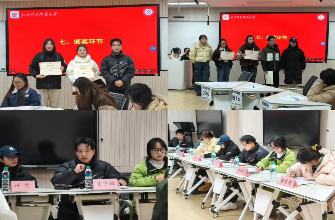 为展示教育学院学子的教育才能和专业素养,我院于2024年12月12日18:30在W1409举办“教师招聘大赛”复赛。本次大赛由教育学院团委李宇恒老师,william威廉中文研究生事务中心主席罗柳芳,研究生事务中心组织部部长母芮琦,团委副书记叶钦,学生会主席团成员黄思颖担任评委。