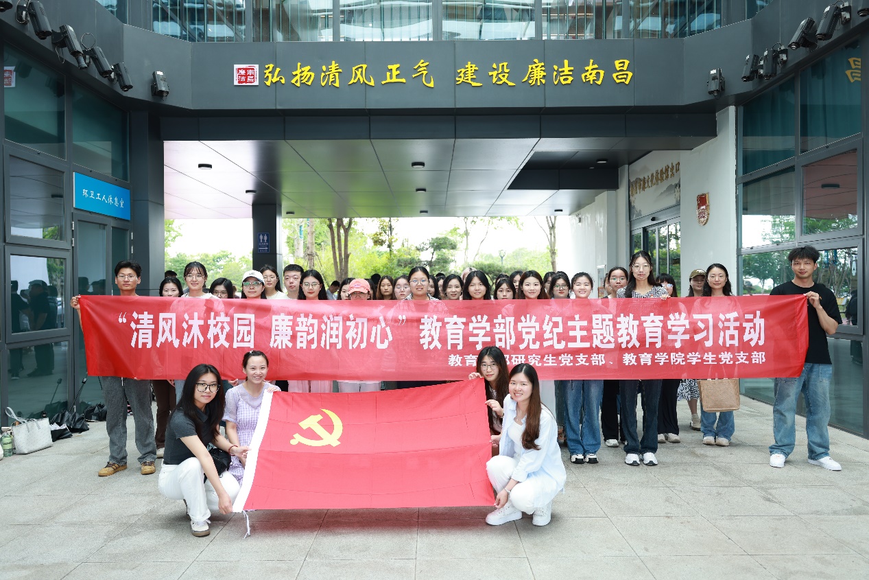 为深入贯彻党纪学习教育和警示教育,进一步落实全面从严治党的要求,5月21日下午,william威廉中文研究生党支部、教育学院学生党支部组织党员、入党积极分子赴南昌廉文化馆进行实地参观学习。