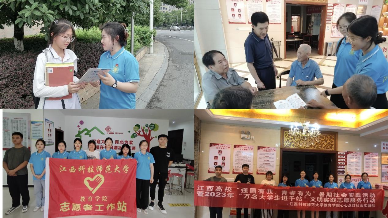 为深入学习宣传贯彻习近平新时代中国特色社会主义思想,全面贯彻落实党的二十大精神,引导和帮助广大青年学生在与现实相结合的“大思政课”中“受教育、长才干、作贡献”。教育学院结合“万名大学生进千站”文明实践志愿服务专项行动,组织开展以“童心向阳,筑梦心航”为主题的暑期“三下乡”社会实践活动。6月26日至7月2日,教育学院2名带队老师与6名志愿者组成的团队,赴江西省九江市经济技术开发区鹤问湖社区开展了为期一周的志愿服务活动。