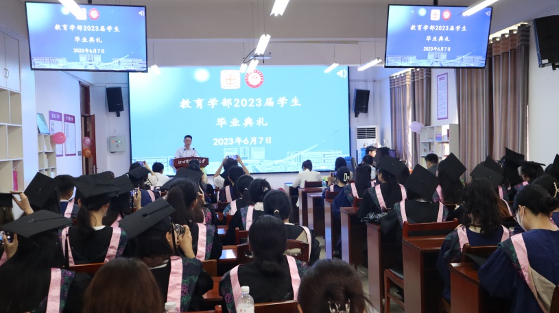 学部主任欧阳忠明代表学部对全体毕业生表示热烈的祝贺,向所有关心、支持和帮助各位毕业生成长成才的亲人、师长和朋友表示最衷心的感谢。他回顾了全体毕业生在教育学院求学的时光,对全体毕业生提出了希望,希望大家做好选择,让专业专长为奋斗助力;希望大家继续学习,让丰富阅历为创新开路;希望大家笃定坚守,让信仰初心为人生领航。