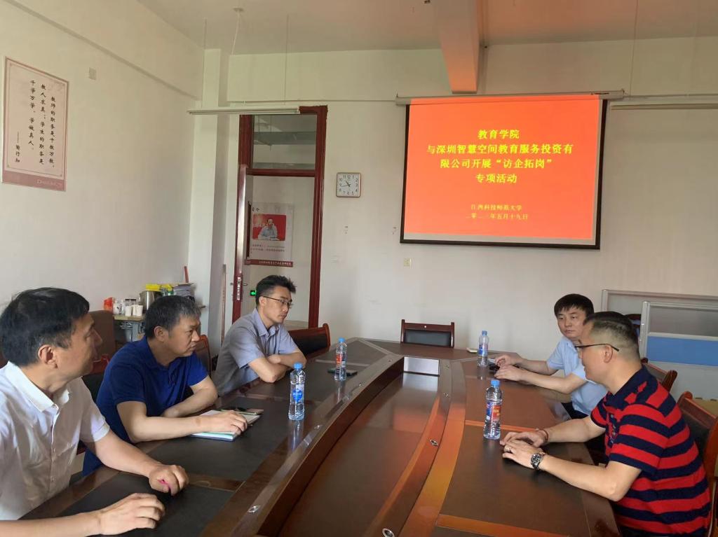为拓宽毕业生就业渠道,深入推进我院“访企拓岗”促就业专项行动,促进毕业生高质量就业,5月19日,教育学院与深圳智慧空间教育服务投资有限公司开展“访企拓岗”专项行动。学院党委副书记赵清良、学前教育系系主任刘燕伶、学院就业专干及深圳智慧空间教育服务投资有限公司负责人李强辉共同参与洽谈会。双方就“实习基地签订”和“学生见习活动安排”进行了深入交流。