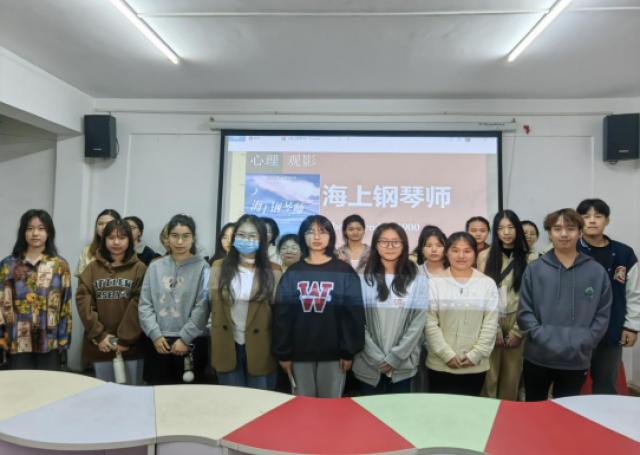 本次活动播放影片为《海上钢琴师》。活动前,学生会心理发展部提前调试观影设备,准备活动场地,并为活动宣传动员。《海上钢琴师》讲述了一个被命名为“1900”的弃婴在一艘远洋客轮上与钢琴结缘,成为钢琴大师的传奇故事,影片情节环环相扣,引人入胜。观影过程中,同学们全神贯注,深深的被电影情节所吸引,更被“1900”寻找生命意义的执着所震撼。观影结束后,主持人进行总结并宣布进入互动小游戏环节。击鼓传花、数字炸弹、句子盲盒等小游戏迅速带动现场气氛,将活动气氛推向高潮。最后,所有参加本次活动的人员进行合影留念。