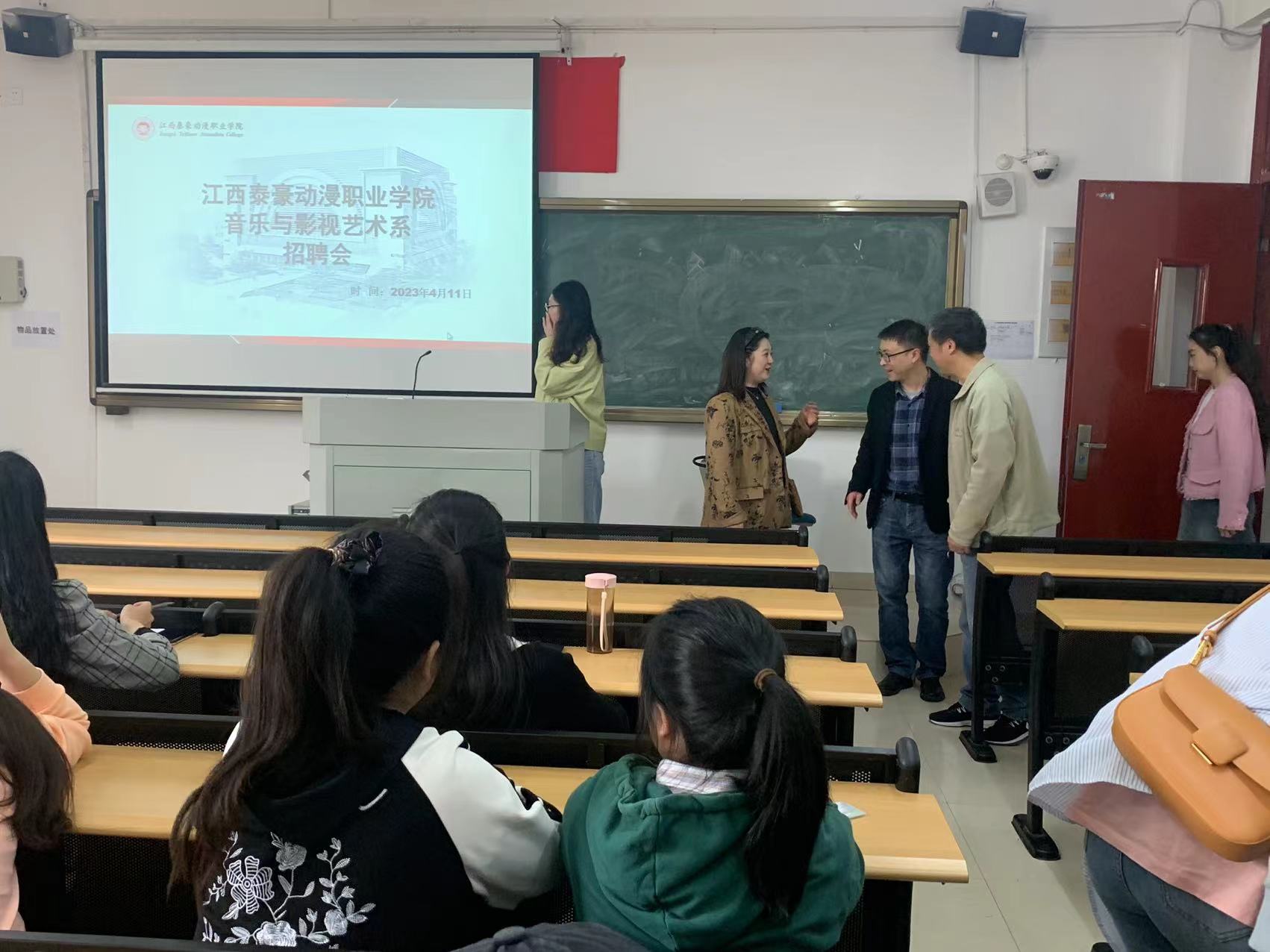 为拓宽学生的就业渠道,更好地解决大学毕业生就业困难的问题,教育学院于2023年4月11日下午在W1108教室举办了专场招聘会。本次招聘会邀请了江西泰豪动漫职业学院人事部门,音乐与影视艺术系系主任和专业教师来我院进行就业宣讲和现场招聘。招聘会由学院就业专干主持,学院书记邓茹仁、副书记赵清良来到现场与招聘单位进行交流,并对我院学生进行应聘指导。学院2023届部分本科、研究生毕业生共同参加了此次招聘会。