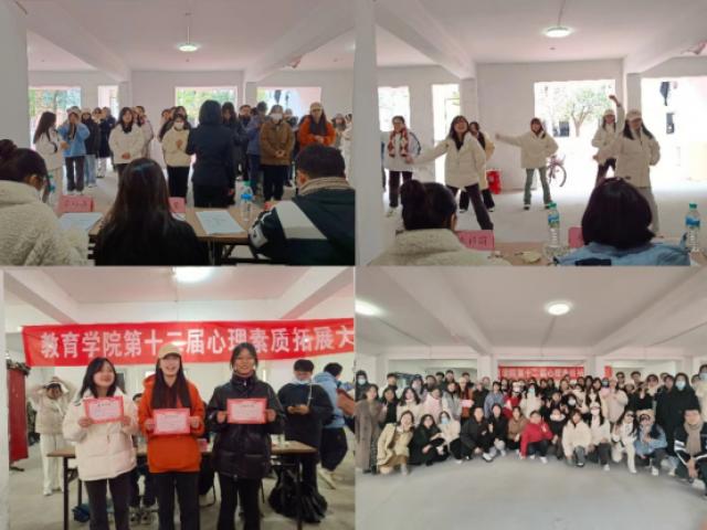为了丰富大学生活,提高学生们的综合素质,提升团队合作能力,教育学院于12月4日下午14:00在3栋架空层举行了教育学院第十二届心理素质拓展大赛。