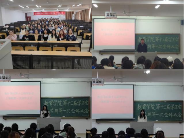 大会伊始,主持人依次介绍了出席本次大会的领导与老师。曹瑜老师发言表达了对学生会新成员们的殷切期望。紧接着,学生会干部代表张燕萍、摄影协会代表付茜茜、班级代表徐可和高敏、各部门新晋干事代表依次上台发言,分享了对于教育学院工作的感想和心得体会。大会还设置了互动环节,全体成员都在便签纸上写下了对未来的美好展望。最后,团委副书记李梓萌为本次大会进行了总结。