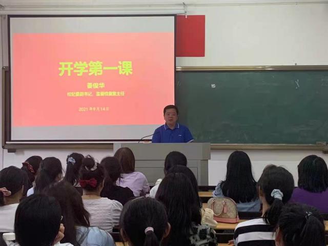 2021年9月14日下午,校纪委副书记、监督检查室主任姜俊华在W1108教室为教育学院2021级学前教育专业(师范)一班的新生们上了开学第一课。