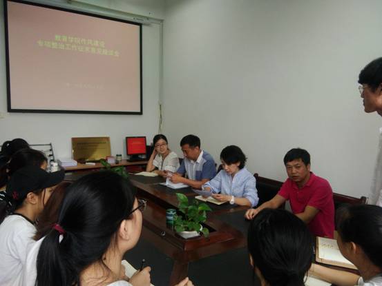 徐艳书记首先介绍了召开本次座谈会的目的,希望同学们实事求是,认真发言。与会同学结合所在班级和自身情况,对学风、教风问题发表意见和看法。从同学们的发言来看,学风情况较好,,但也存在一些问题。教风方面,大部分老师都得到了同学们的认可,对于一些授课认真,教学效果好的老师,同学们给予了充分的肯定和赞扬;对于上课热情不够的老师,同学们也提出了意见。
