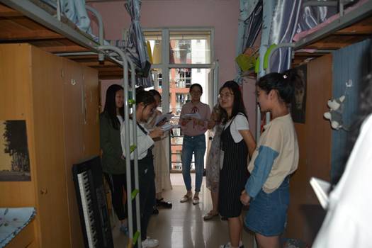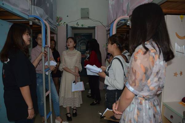 评委们根据参赛寝室名单,对各寝室进行参观。在参观过程中,参赛寝室成员一边带领评委参观,一边向评委介绍寝室的主题、名字和风格。评委们通过细心观察和身心感受,给予各参赛寝室相应的评分。或温馨、或可爱、或简约、或时尚、或典雅,虽风格各异,但统一干净整洁,管理严谨,展现出我院学子的优秀风采。