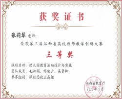 实践成效:近三年专业团队获得江西省课程思政课程,课程思政团队,课程思政教学名师(学校唯一),江西省高校教师教学创新大赛课程思政组三等奖,WilliamHill威廉希尔中文教师教学创新大赛课程思政组特等奖等荣誉,专任教师立项省校级课程思政相关课题3项。带领学生获得思政类竞赛奖励多项,如思政知识竞赛一等奖,心理短剧展演二等奖等。所有专业课程实现思政元素100%融入;学生自主运营的“红角幼学”微信公众号传播红色幼教文化,阅读量超万次,成为网络思政育人新阵地。